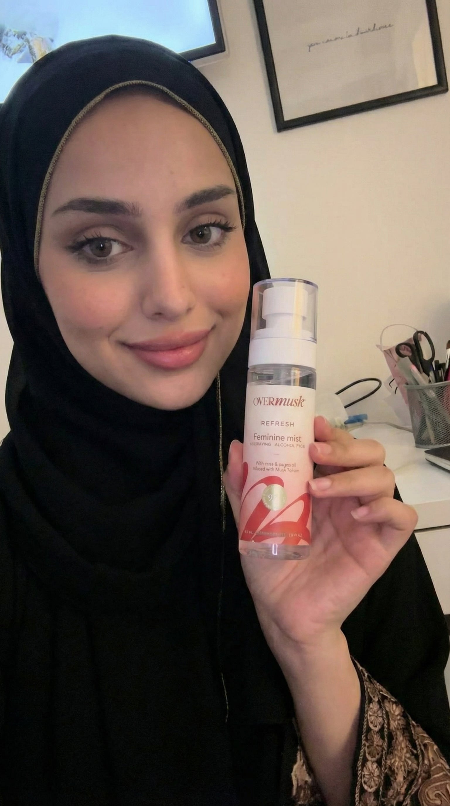 رائحة المسك الطاهر فخمة جدًا، ما تحتاجين عطور ثانية. الجل يدوم طول اليوم، والبخاخ أحطه في شنطتي دايمًا - منعش ومريح.